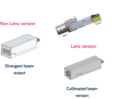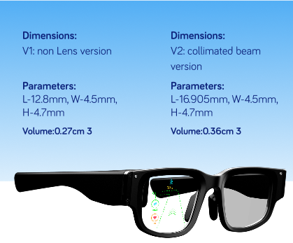 The smallest RGB projector in the world with two configurations: collimated and divergent beams for high-contrast, high-resolution projection.