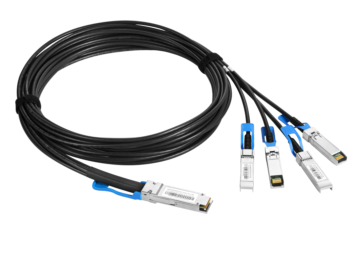Breakout configuration: 1×QSFP28 to 4×SFP28 connectors