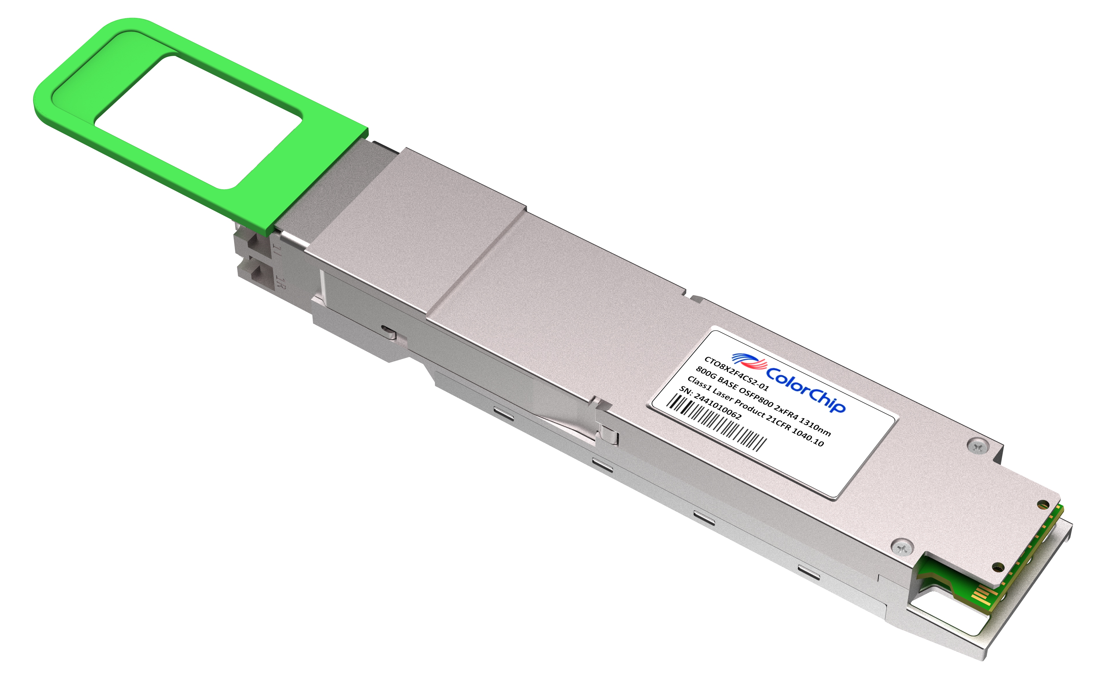The 800 Gigabit Ethernet signal is carried over four wavelengths at 1271, 1291, 1311, 1331 nm. This transceiver is compliant with IEE802.3ck, IEEE 802.3cu, OSFP MSA. It is suitable for 800G Ethernet, Breakout 2x 400G FR4, Data Center, Cloud Networks.